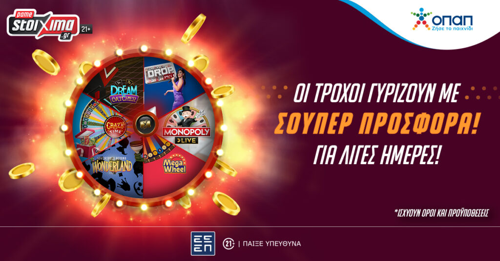 Pamestoixima.gr: Σούπερ προσφορά* στα Live Game Shows Τροχών, για λίγες ημέρες!