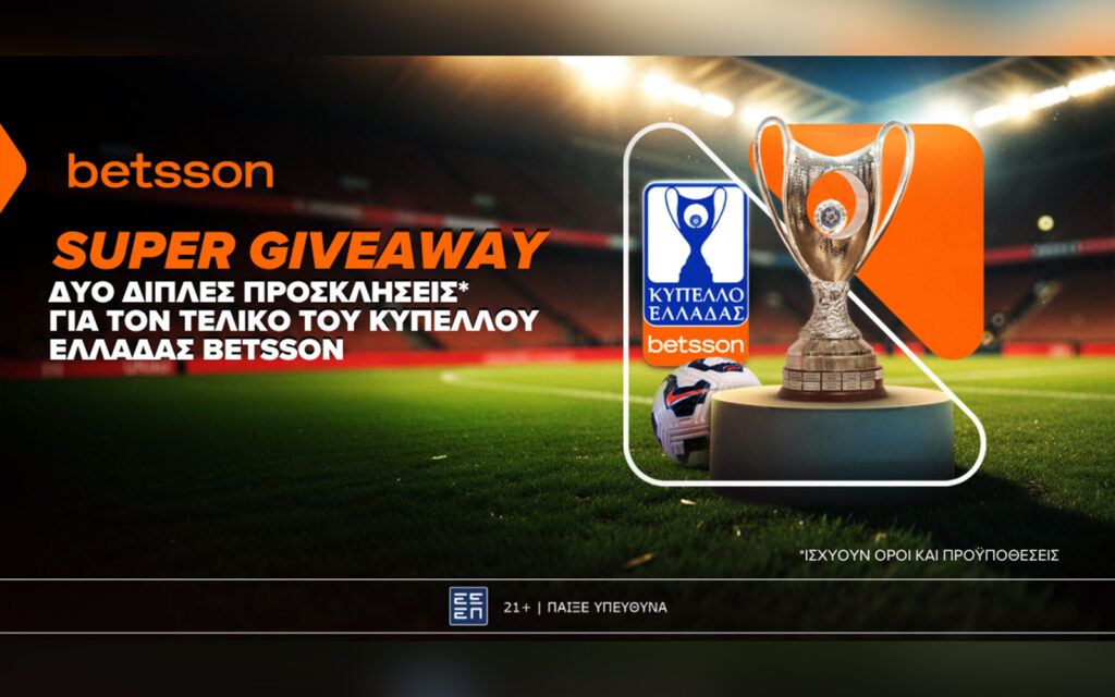 ΕΔΩ ΜΠΟΡΕΙΣ ΝΑ ΒΡΕΙΣ ΤΟ SUPER GIVEAWAY ΤΗΣ BETSSON ΓΙΑ ΤΟ ΚΥΠΕΛΛΟ ΕΛΛΑΔΑΣ BETSSON! Στην Betsson, κάθε μέρα είναι ξεχωριστή, με νέες προσφορές* και εκπλήξεις που συνεχίζονται μέχρι το τέλος όλων των διοργανώσεων!