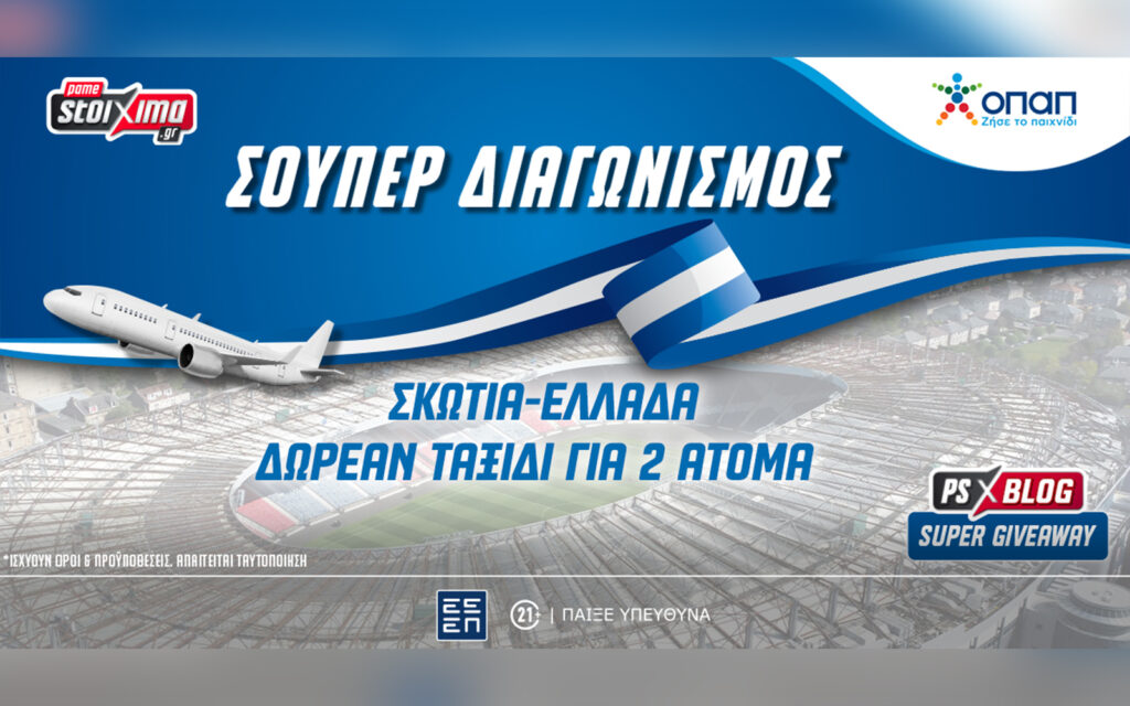 Ακόμα ένας συναρπαστικός διαγωνισμός* από το PS Blog, ο οποίος σου δίνει τη δυνατότητα να βρεθείς στη Γλασκώβη, για να παρακολουθήσεις το Σκωτία-Ελλάδα (23/03, 19:00), για τα play-offs του Nations League!
