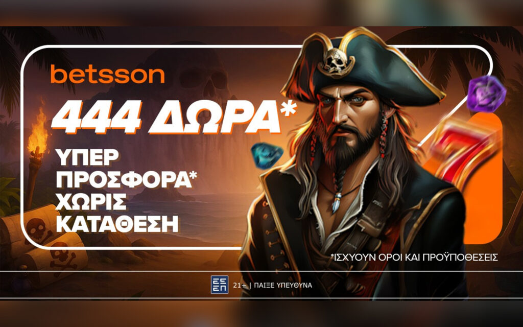 Betsson: Σούπερ προσφορά* με 444 δώρα χωρίς κατάθεση είναι εδώ!