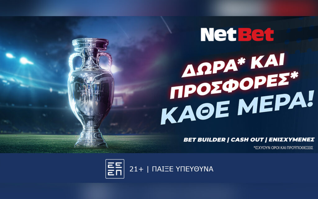 Διπλή προσφορά* γνωριμίας, Boost νίκης στα παρολί*, Cash Out, Ενισχυμένες, υπερσύγχρονη πλατφόρμα για live betting, νέο Bet Builder και Ατζέντα καθημερινών προσφορών* στο live casino, μόνο στη NetBet!