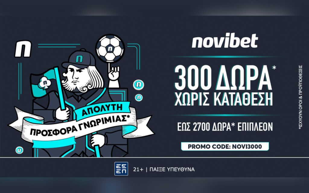 H απόλυτη προσφορά* χωρίς κατάθεση από τη Novibet!