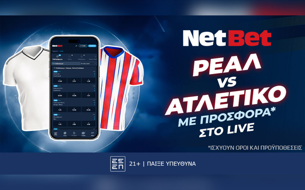 Σούπερ παιχνίδι απόψε για τα play offs του Champions League στο «Σαντιάγο Μπερναμπέου» ανάμεσα σε Ρεάλ και Ατλέτικο κι εσύ απολαμβάνεις όλες τις αναμετρήσεις με σούπερ προσφορές* χάρη στη NetBet, την κορυφαία πλατφόρμα για στοίχημα. Και ειδικά για απόψε…