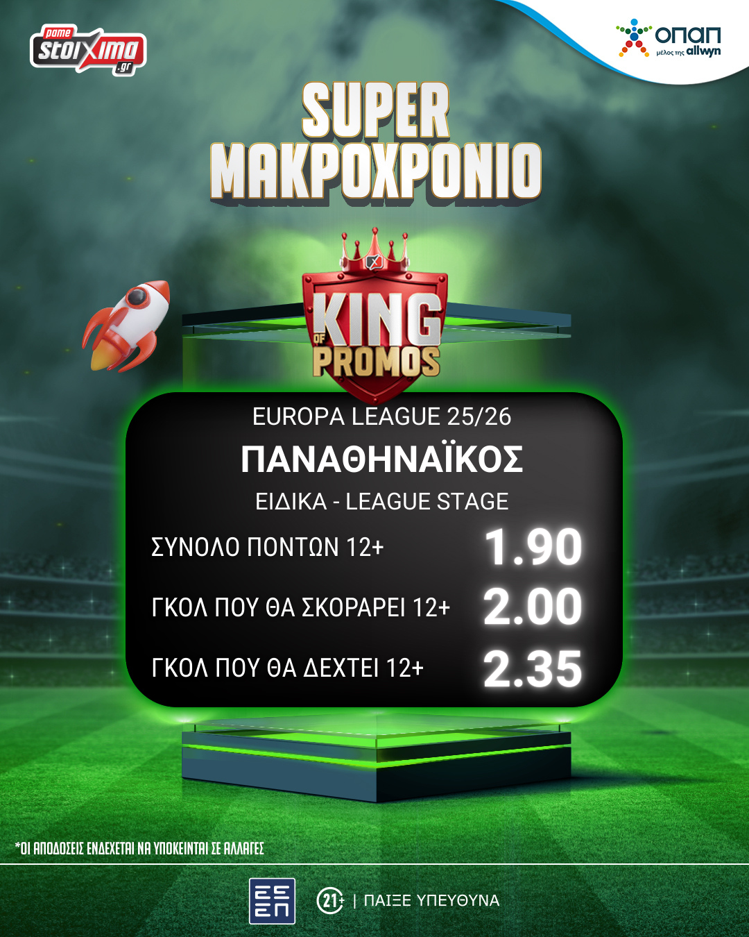Το Pamestoixima.gr προσφέρει και ενισχυμένα* μακροχρόνια για την πορεία του Παναθηναϊκού στη League Stage: