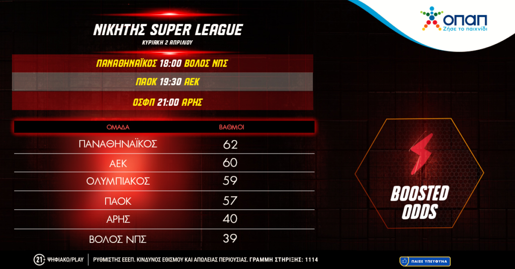 Όλα τα παραπάνω αποτελέσματα έφεραν και ανανέωση στις αποδόσεις* για την στέψη του φετινού πρωταθλητή της Super League.