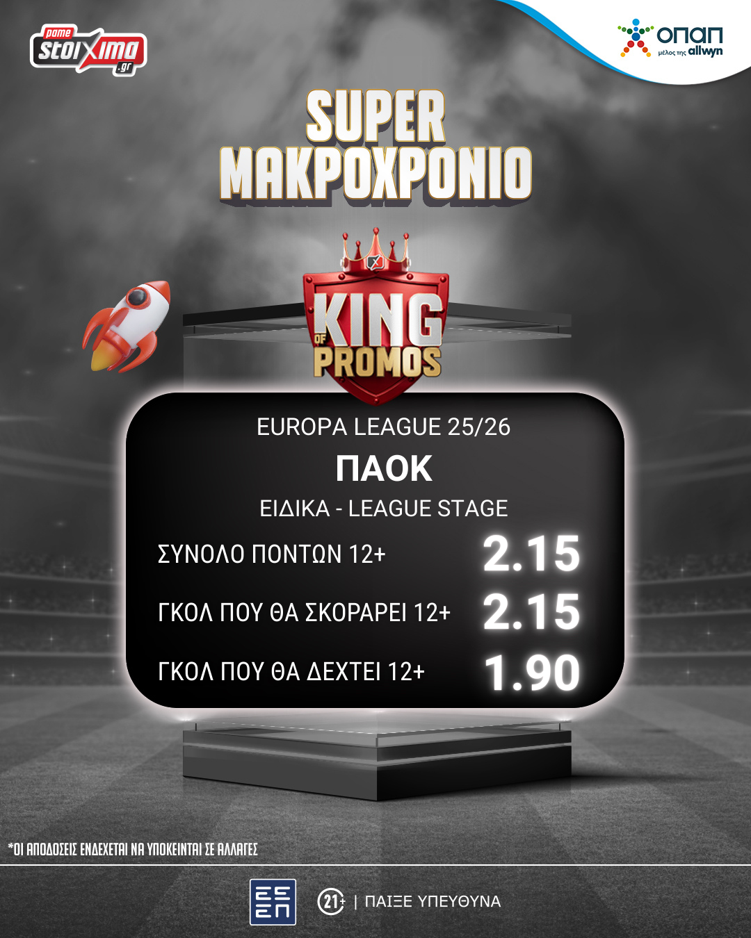 *Ισχύουν Όροι & Προϋποθέσεις. «21+ |Αρμόδιος Ρυθμιστής ΕΕΕΠ | Κίνδυνος εθισμού & απώλειας περιουσίας | ΓΡΑΜΜΗ ΣΤΗΡΙΞΗΣ: 1114| Παίξε Υπεύθυνα |».