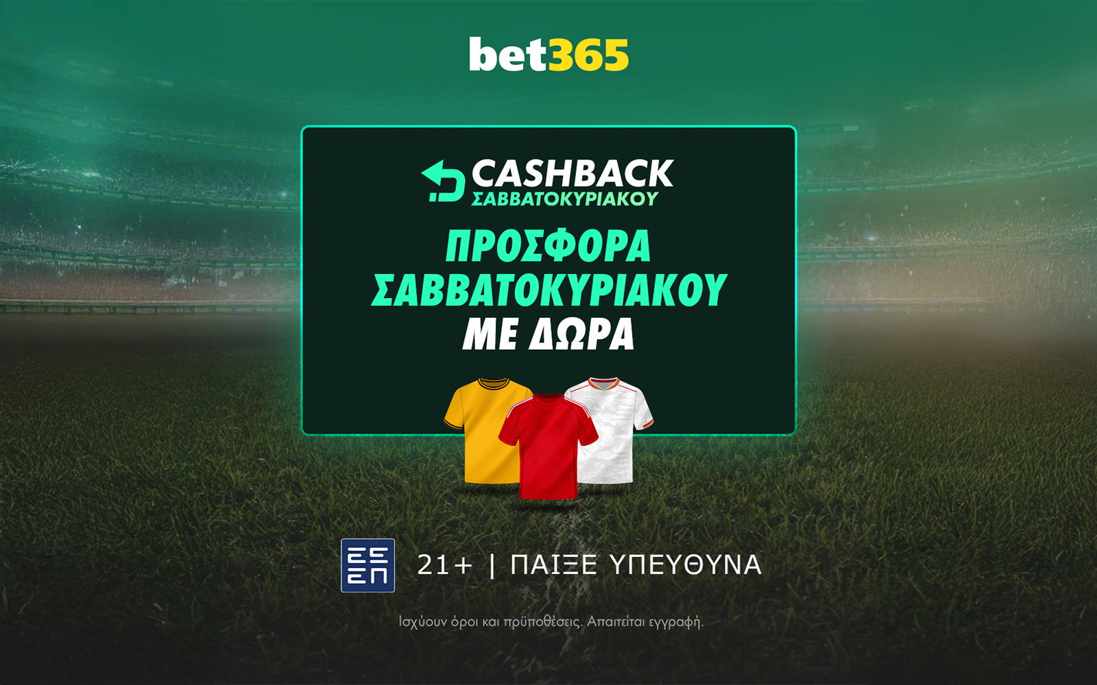 Αυτό το Σαββατοκύριακο είναι γεμάτο δράση με όλα τα κορυφαία πρωταθλήματα ποδοσφαίρου και η bet365 έχει ετοιμάσει μία εκπληκτική προσφορά για εσάς! Αν δεν πάτε ταμείο το Σαββατοκύριακο (10 και 11 Μαΐου), θα λάβετε επιστροφές!