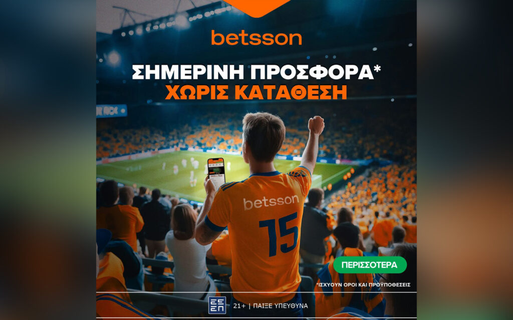 Η σημερινή μέρα γίνεται ακόμα πιο συναρπαστική για σένα με μία μοναδική προσφορά* χωρίς κατάθεση από την Betsson για το στοίχημα!