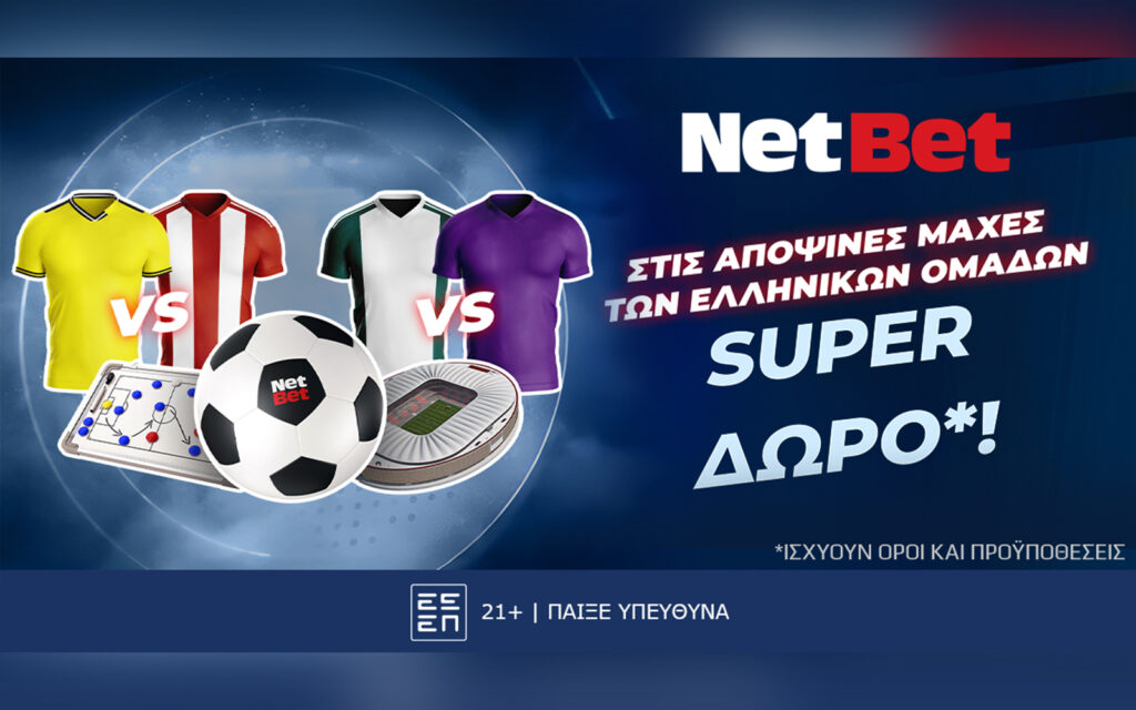 Διπλή προσφορά* γνωριμίας, Boost νίκης στα παρολί*, Cash Out, Ενισχυμένες, υπερσύγχρονη πλατφόρμα για live betting, νέο Bet Builder και Ατζέντα καθημερινών προσφορών* στο live casino, μόνο στη NetBet!