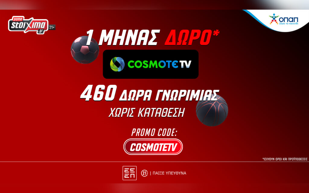 Με τη σούπερ, αποκλειστική προσφορά* γνωριμίας του Pamestoixima.gr, παρακολουθείς όλο το αθλητικό περιεχόμενο της COSMOTE TV για ένα μήνα!