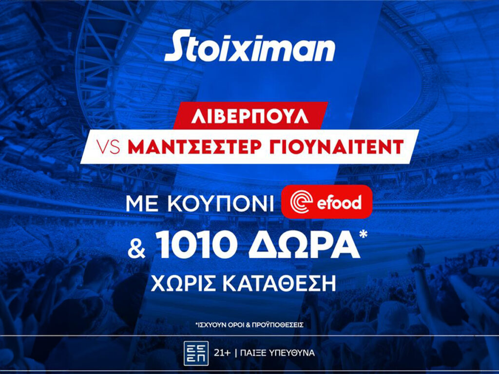 Προσφορά* γνωριμίας από τη Stoiximan με 1010 δώρα* και κουπόνι efood χωρίς κατάθεση*!