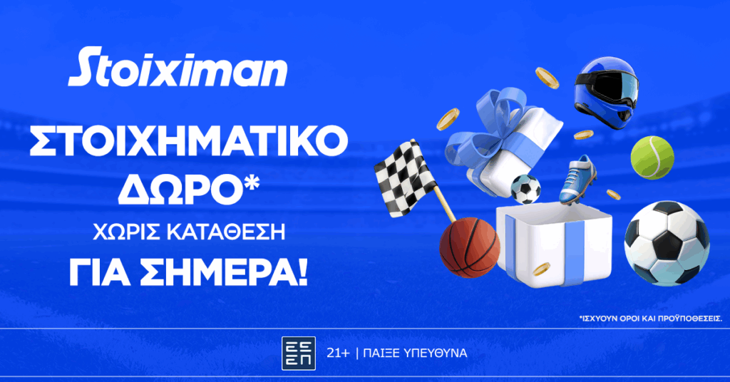 Με την έναρξη των πρωταθλημάτων να έχει μπει για τα καλά στην καθημερινότητά μας, η Stoiximan σε κρατάει πάντα μέσα στο παιχνίδι και προσφέρει σε όλα τα μέλη της ένα super δώρο*, εντελώς δωρεάν* και χωρίς κατάθεση!