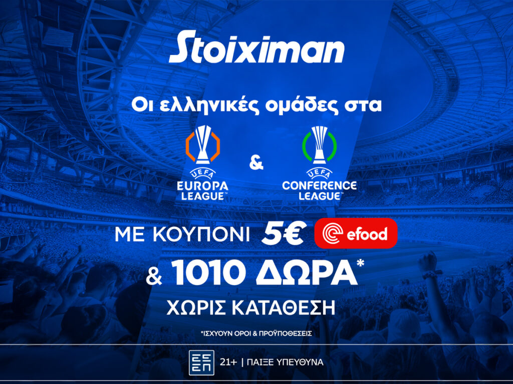 Προσφορά* γνωριμίας από τη Stoiximan με 1010 δώρα* και κουπόνι efood χωρίς κατάθεση*!
